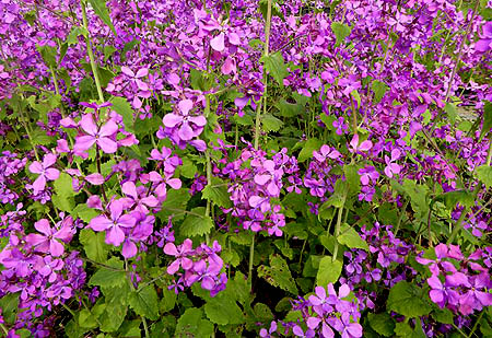 گلهای سفید و بنفش لوناریا در بهار و تابستان ظاهر میشوند و