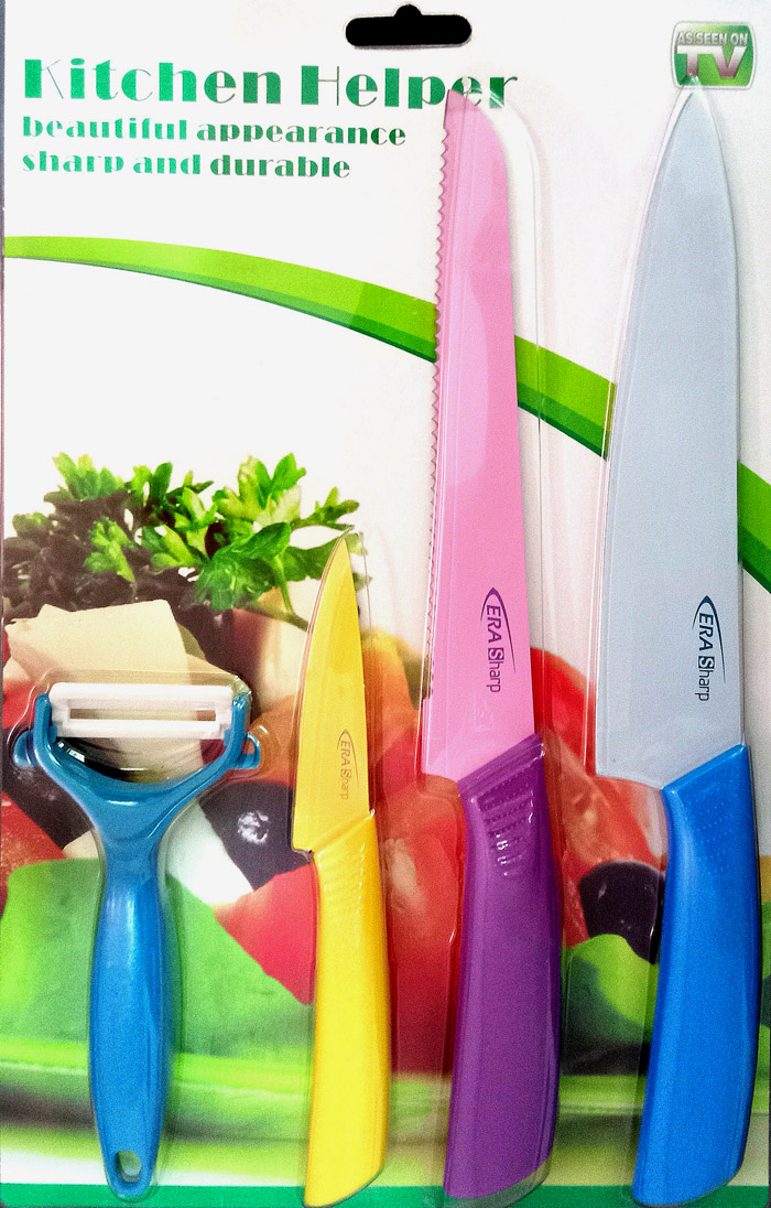 طول 2تا از چاقوها از نوک تا انتهای دسته 30 تا 32 سانتی متر است. و یک عدد 20 سانتی به علاوه یک پوست کن.