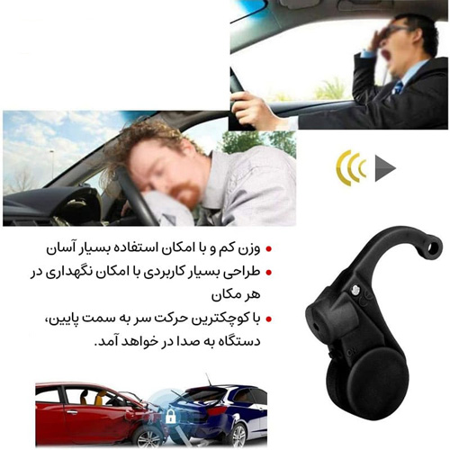 کار این هشداردهنده این است که با نصب روی گوش، در صورتی که راننده به خواب برود و سرش به سمت پایین تغییر زاویه دهد با صدای سوت ممتدی که تولید میکند موجب هوشیاری و بیداری راننده میشود.